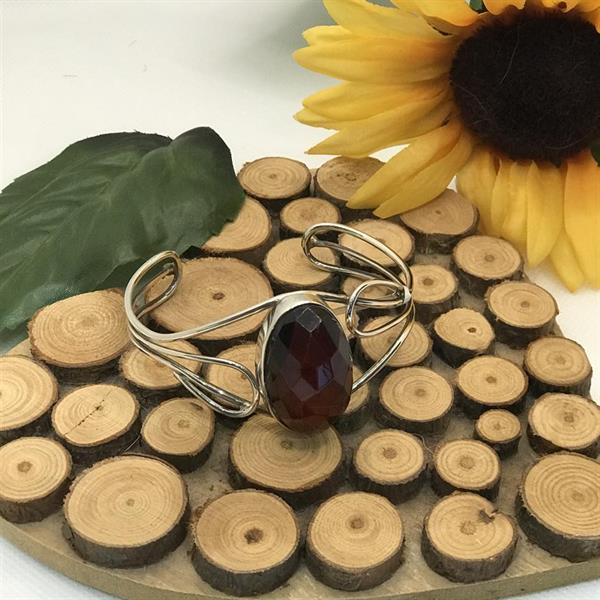 Beautiful piece of Faceted piece of Amber set on a Silver Bangle.