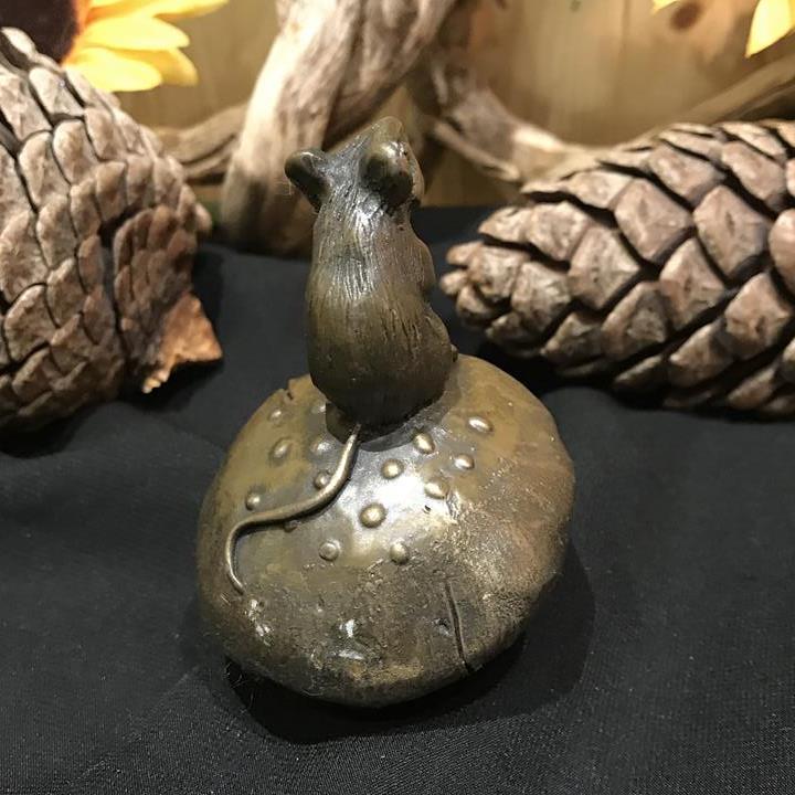 Bronze Mouse on a Mushroom. Height 3.5"