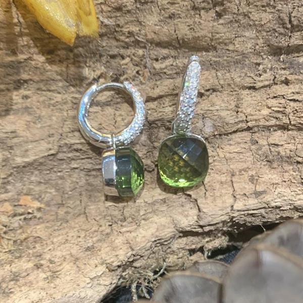 Silver Cats eye drop earrings. CZ hoop