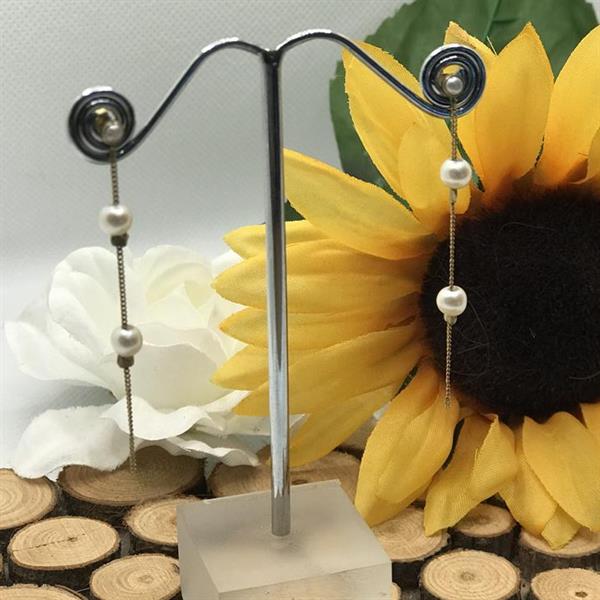 Gold Earrings with two Pearls.