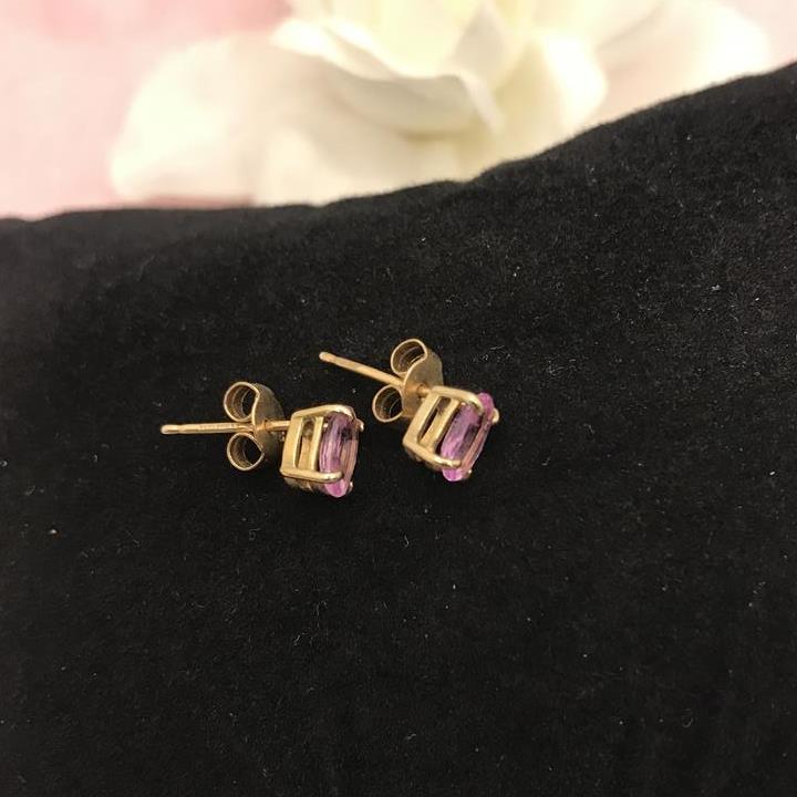 Gold Stud Earrings with Pink Sapphires