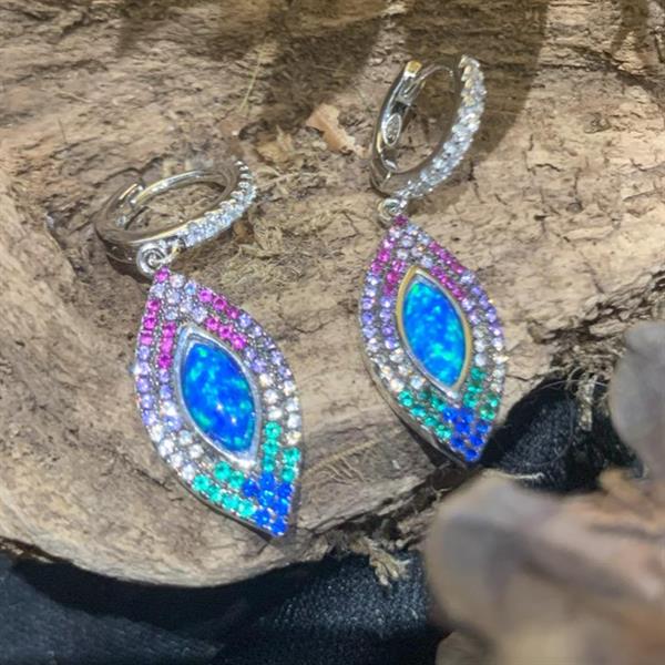 Silver Opalite drop earrings with multi CZ stones.