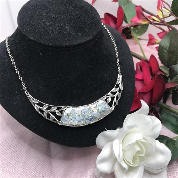 Silver Necklace with Roman Glass. Chain Length 15"