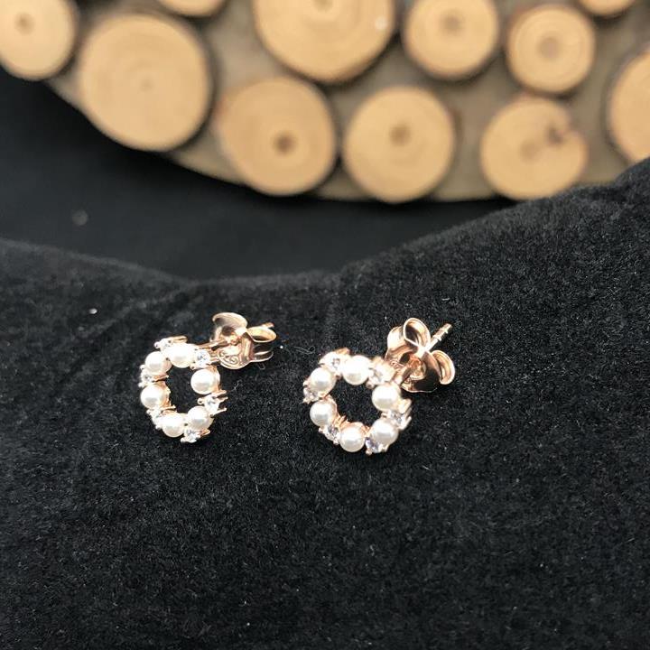 Silver, Cubic Zirconia, Pearl, Rose Gold Plated Earrings