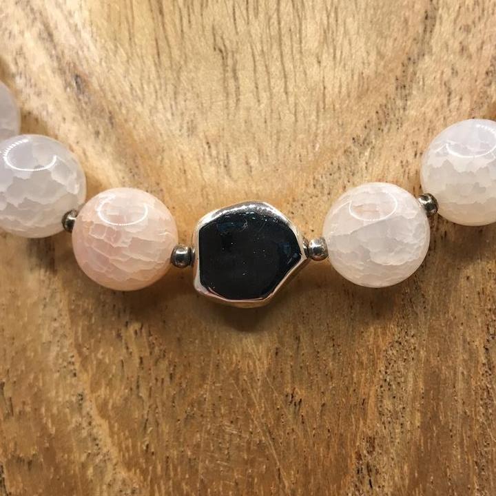 Agate Bead Necklace. T Bar. Silver Nugget Centre Piece.