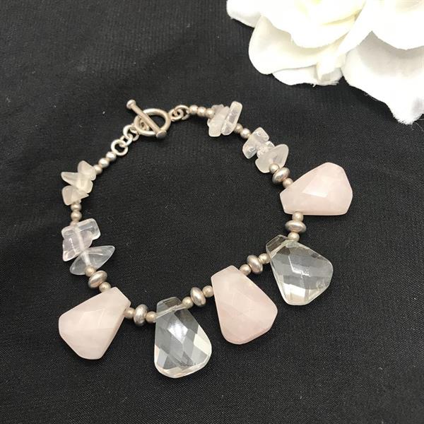 Silver and Rose Quartz T Bar Bracelet