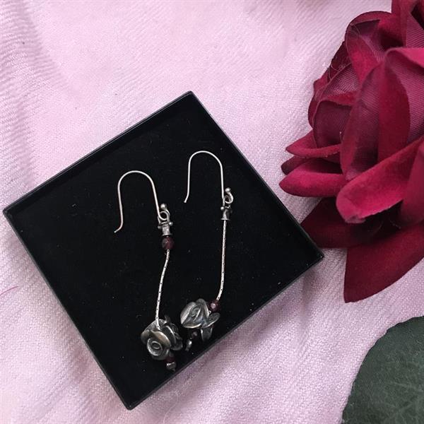 Silver Drop Rose Earrings.
