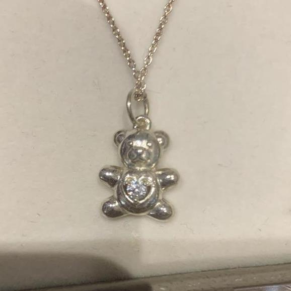 Lovely little teddy bear with a CZ tummy.