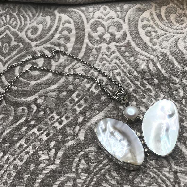 Silver and Mother of Pearl Pendant Necklace Shop > Jewellery > Necklaces > Silver and Mother of Pearl Pendant Necklace