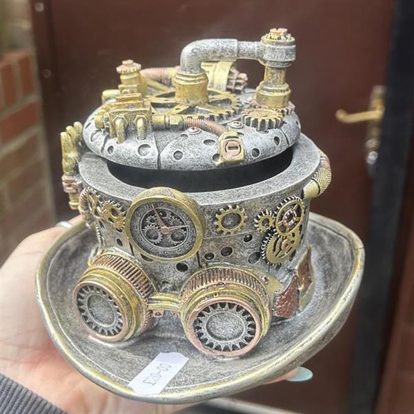 An eye-catching fusion of gothic fantasy and industrial charm, the Steampunk Hat Trinket Box from the Juliana Mystic Legends collection offers both decorative appeal and functionality. Sculpted from high-quality resin, this compact trinket box mimics a classic steampunk top hat, adorned with layered cogs, gears, and riveted components in a distressed metallic finish.