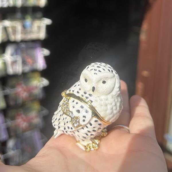 Step into the enchanting world of the Treasured Trinkets – Snowy Owl by STRATTON, a whimsical and meticulously crafted trinket box that captures the true essence of this majestic bird.